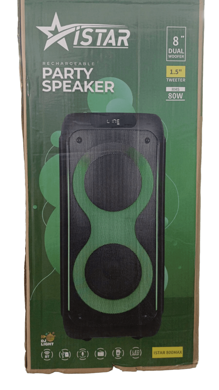 Upgrade your party game with the ISTAR Wireless Rechargeable Party Speaker. With 80W of power and an 8" Dual Woofer, this speaker delivers high-quality sound for all your favorite tunes. Plus, its wireless and rechargeable design allows for easy portability and convenience. Turn up the volume and get the party started!