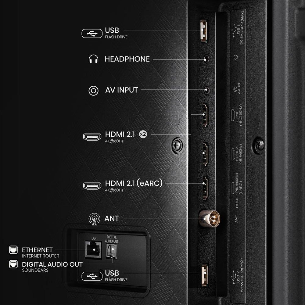 - 4 HDMI Ports & 2 USB — connect consoles, Blu-ray players, USB drives, and more