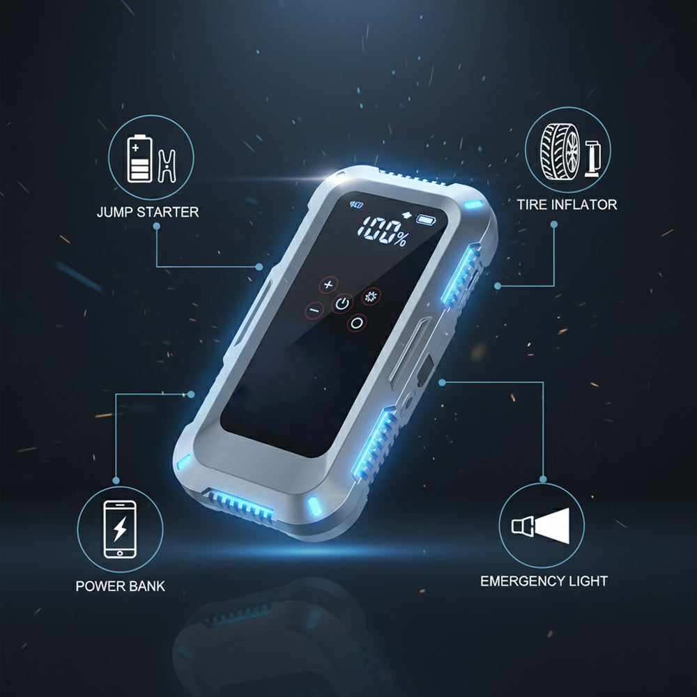 The Istar-ST IS-8003V is the ultimate all-in-one emergency kit for any vehicle owner. This powerful, compact device combines a high-capacity jump starter, a robust air compressor, and a portable power bank, all integrated with a multi-mode LED light. Never be stranded by a dead battery or flat tire again. Its rugged design and powerful specs ensure reliability and peace of mind on the road.