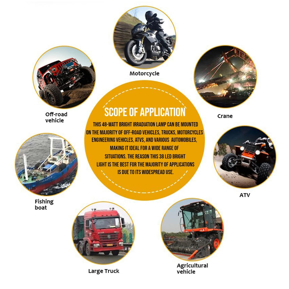 - High Power Output: 48W driven by 38 high-intensity LED chips for strong illumination.